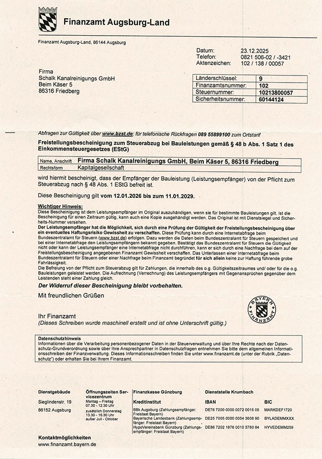 Freistellungsbescheinigung Finanzamt, PDF (547 KB)